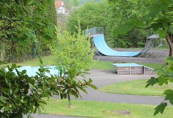 Der Skater Park (am Bürgerhaus) ist ausgestattet mit Halfpipe, Hindernisparcours, Basketballfeld und Spielplatz.