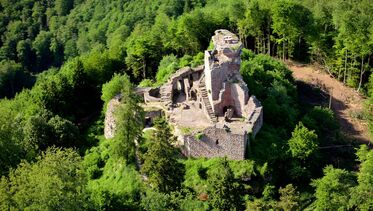 Die Burgruinen beeindrucken durch ihre Lage, meist auf hohen Felsen, und natürlich durch ihre grandiose Aussicht hinab ins Tal oder über das Biosphärenreservat Naturpark Pfälzerwald/ Nordvogesen.