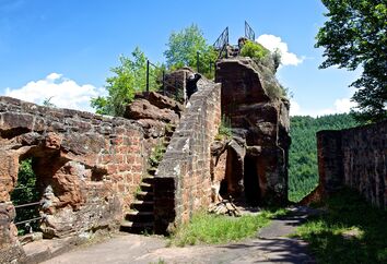 Die Burgruinen beeindrucken durch ihre Lage, meist auf hohen Felsen, und natürlich durch ihre grandiose Aussicht hinab ins Tal oder über das Biosphärenreservat Naturpark Pfälzerwald/ Nordvogesen.