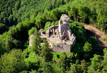 Die Burgruinen beeindrucken durch ihre Lage, meist auf hohen Felsen, und natürlich durch ihre grandiose Aussicht hinab ins Tal oder über das Biosphärenreservat Naturpark Pfälzerwald/ Nordvogesen.