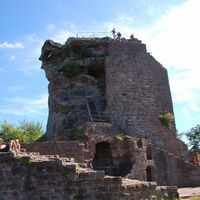 Die Hohenbourg liegt in 550 m Höhe auf dem Schlossberg direkt an der deutsch-französischen Grenze. Erbaut wurde sie Anfang des 13. Jahrhunderts von dem Geschlecht der Puller von Hohenburg. Durch Erbschaft ging die Burg auf die Sickinger über. Anfang des 16. Jahrhunderts verstärkten diese die Hohenbourg durch einen großen Geschützturm. 1523 wurde sie dann in der Sickinger Fehde zerstört, jedoch zwischen 1547 und 1578 wieder als Renaissanceschloss aufgebaut. Wie viele andere Wehranlagen zerstörten die Franzosen im Jahr 1680 die Anlage, die seitdem Ruine ist. Besonders gut erhalten ist ein Tor zur Hauptburg mit aufwendigen Renaissanceskulpturen.