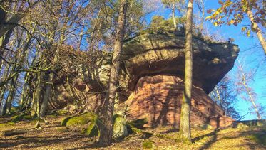 Imposanter Felskoloss aus Buntsandstein nahe Münchweiler an der Rodalb mit wunderbarer Aussicht.