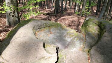 Steintrümmer eines großen keltischen Ringwalls mit einer Opferschale.