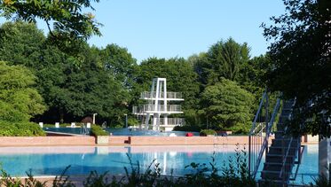 Warmfreibad mit Sprungturm, Rutsche, Wasserpilz und vieles mehr sowie der Wasserspielplatz laden große und kleine Gäste zum Verweilen ein.
