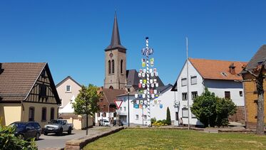 Ortskern Clausen mit Kirche und Hawebrunnen