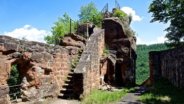 Lage: Oberhalb von Schönau. Typische Wasgauburg, malerisch auf einem freistehenden Felsen gelegen, aus dem 13. Jahrhundert.