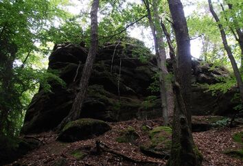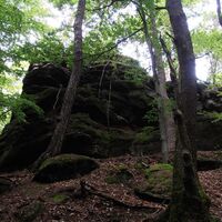 Der Ambossfelsen lieght am Premiumwanderweg Felsenwald. Nach jahrhundertelanger Errosion des Sandsteins hat der Fels die Form eines Ambosses angenommen.