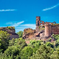 Auf fünf nebeneinander stehenden Buntsandsteinfelsen erheben sich die Ruinen der drei Wehranlagen. Urkundlich werden die Burgen bereits in der ersten Hälfte des 12. Jahrhunderts erwähnt. Die Burgengruppe zählt mit fast 200 Metern Länge zu den größten mittelalterlichen Wehranlagen der Pfalz. Im Dreißigjährigen Krieg wurden die Burgen weitgehend zerstört. Im Burgmuseum der Burgengruppe gibt es interessante Funde zu sehen.