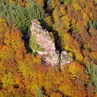 Erbaut wurde die Froensbourg 1269 durch einen Zweig der Fleckensteiner Familie. Durch das Raubrittertum wurde die gesamte Burg zerstört. Eine Reichsverfügung von 1354 verbietet den Wiederaufbau der Burg. 1481 wird die Felsenburg durch die Fleckensteiner wieder aufgebaut und durch einen mächtigen Wohnturm erweitert. 1677 wird sie dann jedoch völlig zerstört. Durch die Zweiteilung in einen großen und einen kleineren Felsen ähnelt die Ruine sehr dem Wasigenstein. Die gesamte Burg wirkt sehr unübersichtlich durch ein Gewirr von vielen Steintreppen. Es sind nur noch wenige Mauerreste und einige schöne Felsenkammern in der Unterburg erhalten.