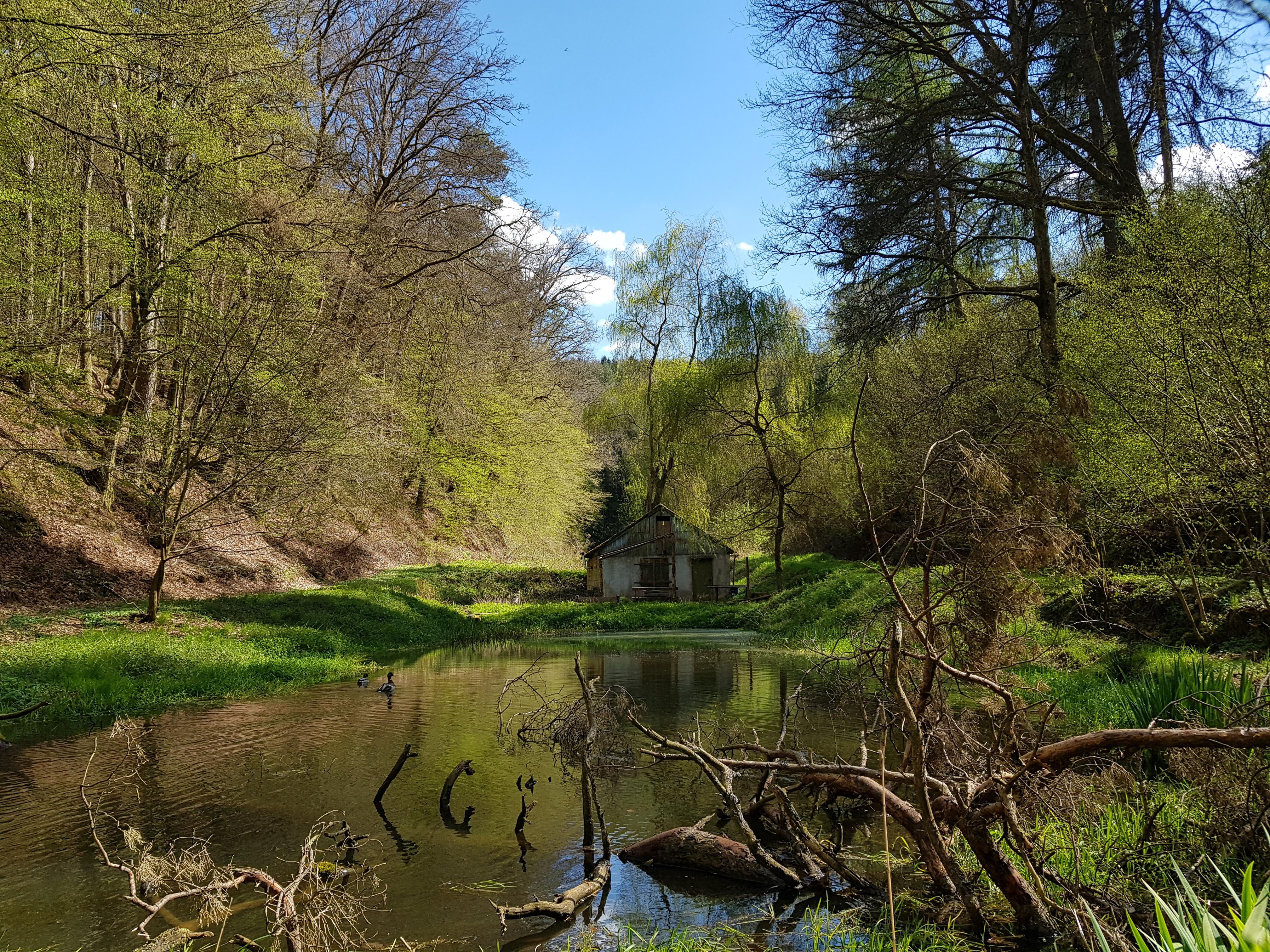 Gemächlich schlängelt sich der Dietersbach vom Dietersberg aus in Richtung Schwarzbachtal. In seinem Verlauf wurden mehrere kleine Fischteiche angestaut, die sich nun als Waldweiher idyllisch in die Landschaft einfügen. An ihnen vorbei führt der schöne Pilgerweg des Gräfensteiner Landes. Insgesamt ein wunderbarer Ort um die Natur zu genießen und aufzutanken.