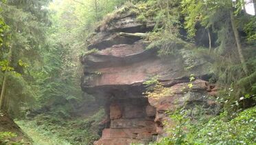 Teufelstisch, Braut & Bräutigam, Jungfernsprung… die Namen und Legenden die sich um sie ranken sind fast so bizarr wie ihre Erscheinung. Der Bundsandstein und die daraus bestehenden Felstürme bestimmen die Landschaft des Pfälzerwalds. Entstanden sind sie im Perm und Trias vor über 250 Millionen Jahren, als sich über 500 m mächtige Sedimentschichten im Gebiet des heutigen Pfälzerwaldes abgelagert haben. Durch Beimengungen von Eisenoxid erhielten sie ihre charakteristische rote Farbe. Ihre heutige Form erhielten sie durch die Erosion der letzten 5 Millionen Jahre. Im Mittelalter dienten sie nicht nur als Sockel oder Fundament für die unzähligen Burgen, sondern wurden auf Grund ihrer leichten Bearbeitbarkeit, häufig in den Burgbau mit einbezogen.