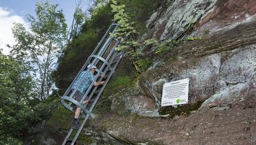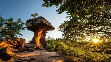 Teufelstisch, Braut & Bräutigam, Jungfernsprung… die Namen und Legenden die sich um sie ranken sind fast so bizarr wie ihre Erscheinung. Der Bundsandstein und die daraus bestehenden Felstürme bestimmen die Landschaft des Pfälzerwalds. Entstanden sind sie im Perm und Trias vor über 250 Millionen Jahren, als sich über 500 m mächtige Sedimentschichten im Gebiet des heutigen Pfälzerwaldes abgelagert haben. Durch Beimengungen von Eisenoxid erhielten sie ihre charakteristische rote Farbe. Ihre heutige Form erhielten sie durch die Erosion der letzten 5 Millionen Jahre. Im Mittelalter dienten sie nicht nur als Sockel oder Fundament für die unzähligen Burgen, sondern wurden auf Grund ihrer leichten Bearbeitbarkeit, häufig in den Burgbau mit einbezogen.