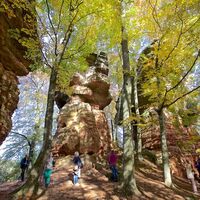 Teufelstisch, Braut & Bräutigam, Jungfernsprung… die Namen und Legenden die sich um sie ranken sind fast so bizarr wie ihre Erscheinung. Der Bundsandstein und die daraus bestehenden Felstürme bestimmen die Landschaft des Pfälzerwalds. Entstanden sind sie im Perm und Trias vor über 250 Millionen Jahren, als sich über 500 m mächtige Sedimentschichten im Gebiet des heutigen Pfälzerwaldes abgelagert haben. Durch Beimengungen von Eisenoxid erhielten sie ihre charakteristische rote Farbe. Ihre heutige Form erhielten sie durch die Erosion der letzten 5 Millionen Jahre. Im Mittelalter dienten sie nicht nur als Sockel oder Fundament für die unzähligen Burgen, sondern wurden auf Grund ihrer leichten Bearbeitbarkeit, häufig in den Burgbau mit einbezogen.