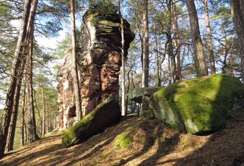 500 m langes Felsmassiv, nordwestlich von Bruchweiler-Bärenbach.