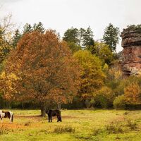 Teufelstisch, Braut & Bräutigam, Jungfernsprung… die Namen und Legenden die sich um sie ranken sind fast so bizarr wie ihre Erscheinung. Der Bundsandstein und die daraus bestehenden Felstürme bestimmen die Landschaft des Pfälzerwalds. Entstanden sind sie im Perm und Trias vor über 250 Millionen Jahren, als sich über 500 m mächtige Sedimentschichten im Gebiet des heutigen Pfälzerwaldes abgelagert haben. Durch Beimengungen von Eisenoxid erhielten sie ihre charakteristische rote Farbe. Ihre heutige Form erhielten sie durch die Erosion der letzten 5 Millionen Jahre. Im Mittelalter dienten sie nicht nur als Sockel oder Fundament für die unzähligen Burgen, sondern wurden auf Grund ihrer leichten Bearbeitbarkeit, häufig in den Burgbau mit einbezogen.