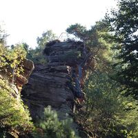 Teufelstisch, Braut & Bräutigam, Jungfernsprung… die Namen und Legenden die sich um sie ranken sind fast so bizarr wie ihre Erscheinung. Der Bundsandstein und die daraus bestehenden Felstürme bestimmen die Landschaft des Pfälzerwalds. Entstanden sind sie im Perm und Trias vor über 250 Millionen Jahren, als sich über 500 m mächtige Sedimentschichten im Gebiet des heutigen Pfälzerwaldes abgelagert haben. Durch Beimengungen von Eisenoxid erhielten sie ihre charakteristische rote Farbe. Ihre heutige Form erhielten sie durch die Erosion der letzten 5 Millionen Jahre. Im Mittelalter dienten sie nicht nur als Sockel oder Fundament für die unzähligen Burgen, sondern wurden auf Grund ihrer leichten Bearbeitbarkeit, häufig in den Burgbau mit einbezogen.