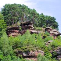 Teufelstisch, Braut & Bräutigam, Jungfernsprung… die Namen und Legenden die sich um sie ranken sind fast so bizarr wie ihre Erscheinung. Der Bundsandstein und die daraus bestehenden Felstürme bestimmen die Landschaft des Pfälzerwalds. Entstanden sind sie im Perm und Trias vor über 250 Millionen Jahren, als sich über 500 m mächtige Sedimentschichten im Gebiet des heutigen Pfälzerwaldes abgelagert haben. Durch Beimengungen von Eisenoxid erhielten sie ihre charakteristische rote Farbe. Ihre heutige Form erhielten sie durch die Erosion der letzten 5 Millionen Jahre. Im Mittelalter dienten sie nicht nur als Sockel oder Fundament für die unzähligen Burgen, sondern wurden auf Grund ihrer leichten Bearbeitbarkeit, häufig in den Burgbau mit einbezogen.