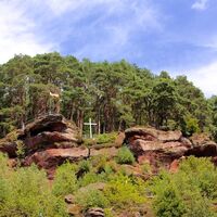 Erreichbar über die Wanderwege "Sandhasen-Tour" (ab Trualbhalle) oder "Krappen(höhle)-Tour" (ab Vinningen; Weg Nr. 7).