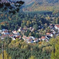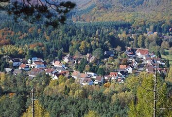 Herrlicher Aussichtsfelsen mit abgesicherter Aussichtskanzel, am östlichen Ortsrand von Ludwigswinkel.