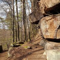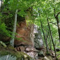 Südlich von Leimen/Pfalz im Gräfensteiner Land, an einem wildromantischen Bergpfad zum Kippkopf gelegene, beeindruckende Felsformationen aus Buntsandstein, die gerne von Kletterern genutzt werden. Am hellen Fels kann man auch dunkle Eisenoxid-Verwitterungen und fossile Einschlüsse entdecken. Ein Stück weiter, von einem Felsplateau oberhalb des Geißenschlupf aus, hat man dann eine phantastische Aussicht und findet zudem einen gemütlichen Rastplatz vor.