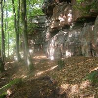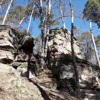 Teufelstisch, Braut & Bräutigam, Jungfernsprung… die Namen und Legenden die sich um sie ranken sind fast so bizarr wie ihre Erscheinung. Der Bundsandstein und die daraus bestehenden Felstürme bestimmen die Landschaft des Pfälzerwalds. Entstanden sind sie im Perm und Trias vor über 250 Millionen Jahren, als sich über 500 m mächtige Sedimentschichten im Gebiet des heutigen Pfälzerwaldes abgelagert haben. Durch Beimengungen von Eisenoxid erhielten sie ihre charakteristische rote Farbe. Ihre heutige Form erhielten sie durch die Erosion der letzten 5 Millionen Jahre. Im Mittelalter dienten sie nicht nur als Sockel oder Fundament für die unzähligen Burgen, sondern wurden auf Grund ihrer leichten Bearbeitbarkeit, häufig in den Burgbau mit einbezogen.