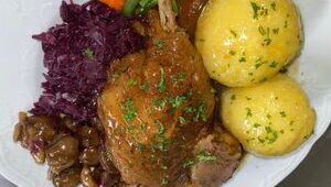 • Rindergulasch vom Bärenbrunner Weiderind, Kartoffelknödel, Kohlgemüse